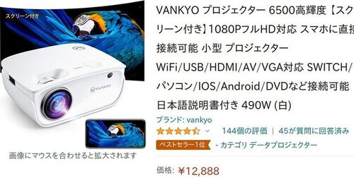 【PC編?】「★人柱?★人生初プロジェクタ購入@AMAZONで1万円弱」と「物欲爆発!」と私と題しまして小話を1つ。 以前から、家でプロジェクタの大画面がみたいなぁとぼやーーと考えていたのですが、今朝、非接触型の体温計をAMAZONで検索していた際に、画面…